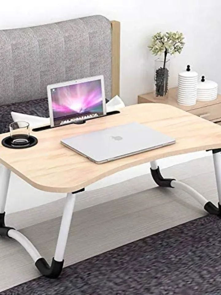 طاولة كمبيوتر محمول خشبية قابلة للطي، طاولة دراسة، مكتب كمبيوتر